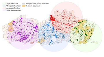 Ligt jouw bedrijf op een bedrijventerrein, of ben je gevestigd in een bedrijvencentrum of incubator in één van de gemeenten opgenomen in onderstaande kaart, dan is het zeker interessant voor jou om de verdere voorwaarden te overlopen. Via geopunt kan je de steunzones in detail bekijken.
