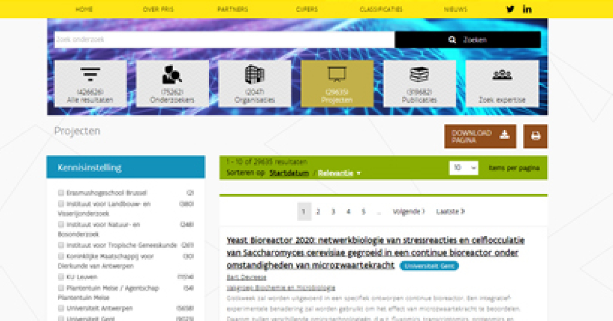 Alle Vlaamse universiteiten en kennisinstellingen publiceren hun onderzoeksprojecten automatisch op www.researchportal.be. Dit portaal biedt een schat aan informatie voor bedrijfsadviseurs die voor hun klanten snel en efficiënt willen nagaan welk lopend onderzoek er in hun domein is in Vlaanderen. Het is bijvoorbeeld gemakkelijk om via allerlei zoektermen een geschikte expert of onderzoekspartner te vinden binnen een bepaalde discipline. Uiteraard kunnen ook bedrijven zelf grasduinen op het onderzoeksportaal.