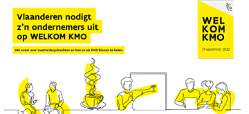 8 aug 2022 Vlaanderen nodigt z'n kmo's uit op WELKOM KMO 8 aug 2022 Op 21 september nodigt de Vlaamse overheid alle ondernemers uit op de WELKOM KMO-beurs. Een dag vol info over het binnenhalen van overheidsopdrachten! Lees meer